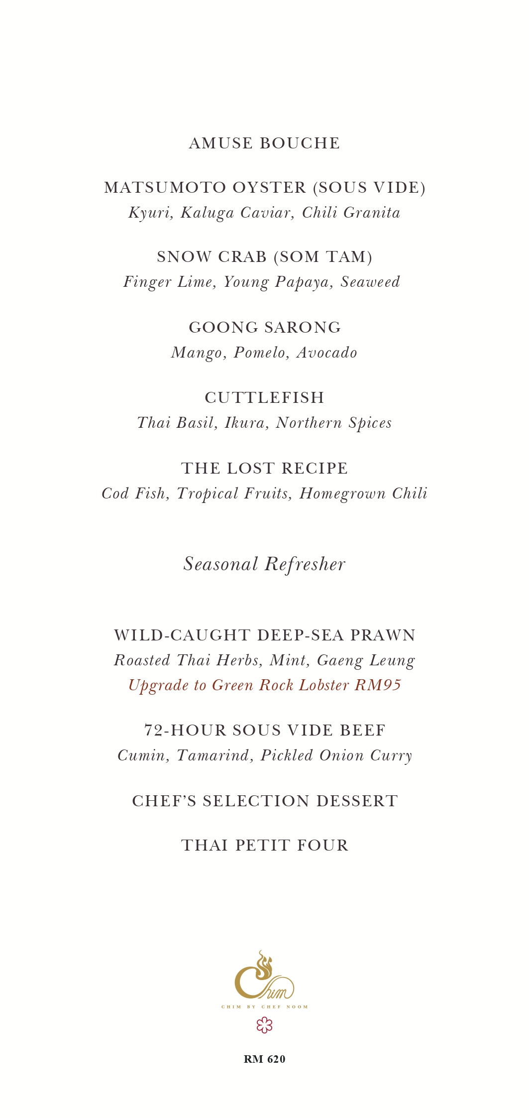 Join us this Naga & the Mekong Legend Menu for an unforgettable fine dining experience.